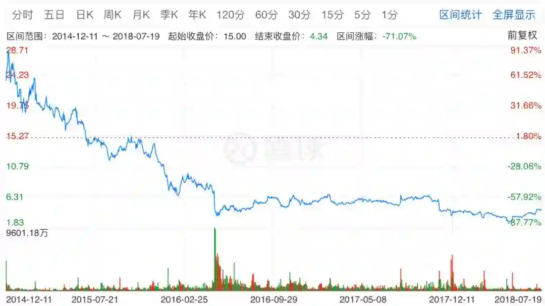 退一步说,即使中国的P2P真的能够走上Lending Club式的道路。这家网贷鼻祖的股价走势也证明P2P绝非一个暴利的行业——上市三年,股价从接近30美元跌到了最低2美元。