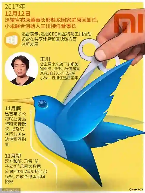 相关资料显示,在 2014 年迅雷的一轮融资中,小米曾领头 2 亿美元,成为迅雷最大的股东,而之后,王川也一直担任迅雷董事。