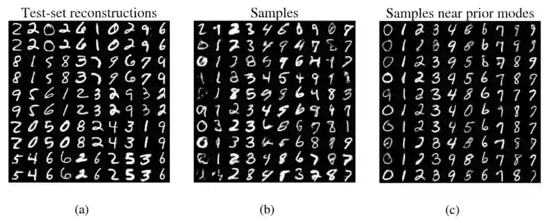 然而,即使在简单的情况下,其中混合体(mixture)的数量少到可以避免离散隐变量的蒙特卡洛采样,训练仍然有问题。例如,[5] 中研究了一个高斯混合隐变量模型(GM-LVM),作者在没有大幅改变 VAE 目标函数时不能使用变分推理在 MNIST 上训练他们的模型。