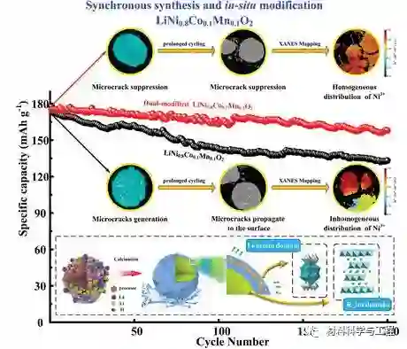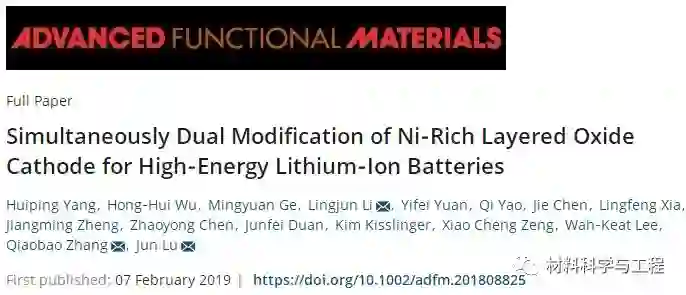 近日,长沙理工大学材料科学与工程学院李灵均副教授团队与厦门大学张桥保助理教授、美国阿贡国家实验室陆俊教授、内布拉斯加大学林肯分校、布鲁克海文国家实验室等海内外团队合作,在高能量密度锂离子电池双重修饰富镍正极材料方面取得了突破性进展。