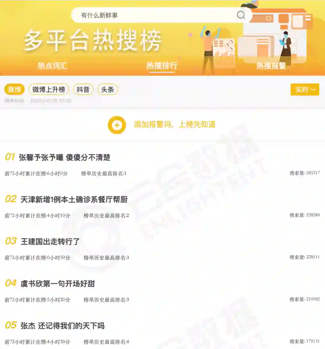 有的网站专门收录热搜历史、统计热搜词汇等