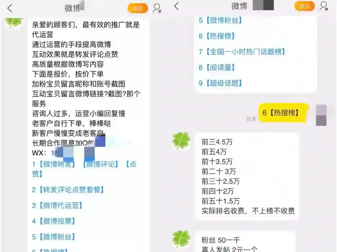 相比广告公司发动大V、金V甚至部分蓝V(机构、媒体等)带话题冲榜,靠着水军刷榜的成功率十分有限。所谓的“微博内部员工操盘”,大概率是水军打着微博员工旗号以骗取客户信任,失败了就甩锅给微博审核机制,成功了则归入自己的功劳。从水军渠道刷热搜,被骗的情况比比皆是,并且难以维权。