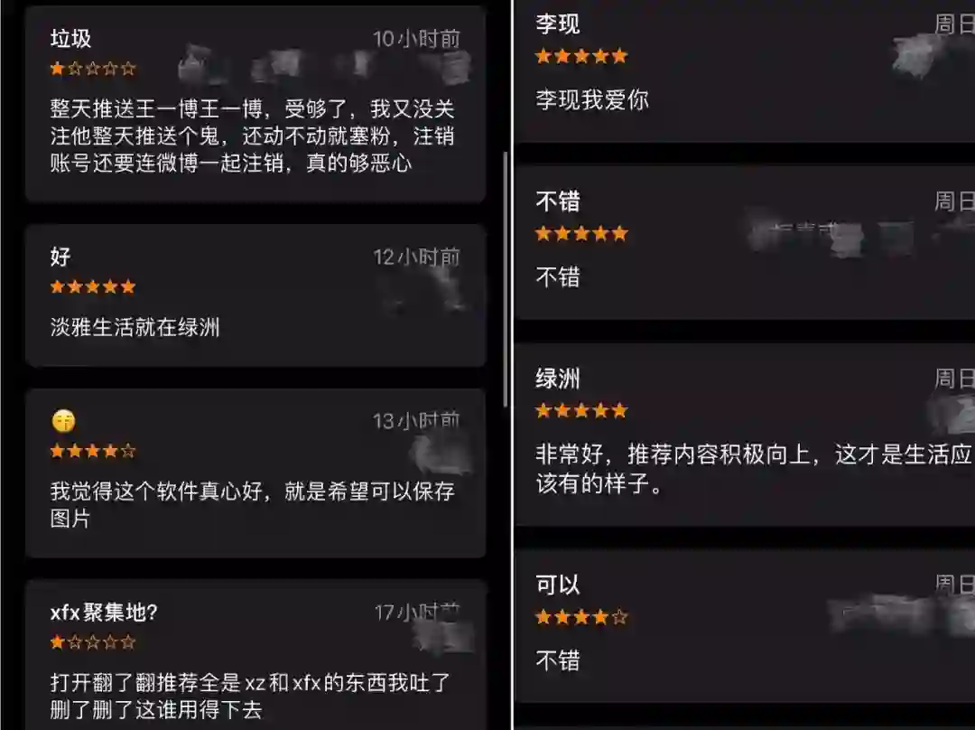 App Store中对绿洲的评价,明星相关的很多
