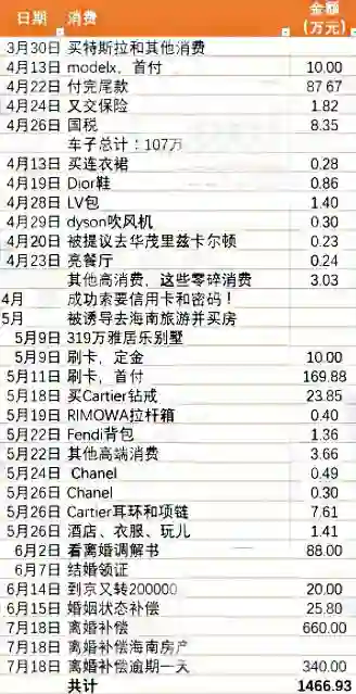 3月30日,两人通过世纪佳缘相识,6月7日领取结婚证,7月18日办理离婚手续,在这短暂的94天里,苏享茂为翟某欣共花费了1300多万,包括购买海南住房、特斯拉电动车、卡地亚钻戒等物品。按照婚姻存续时间42天来计算,平均每天花费30多万元。