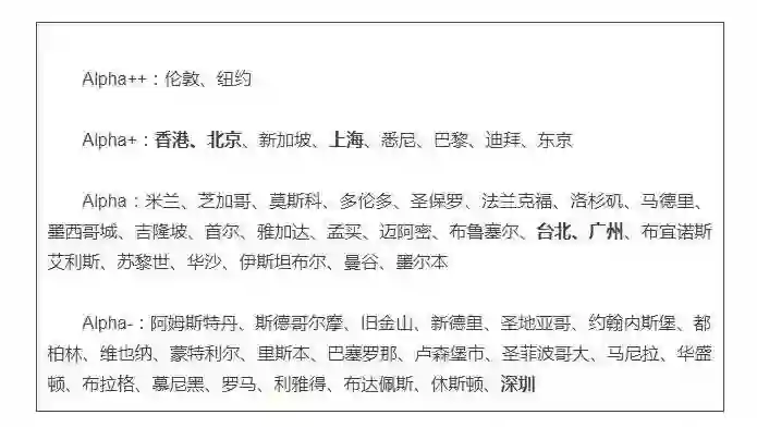 可以参考国际研究机构的全球城市排名。其中比较通用的是世界级城市排名 和全球都市排名。