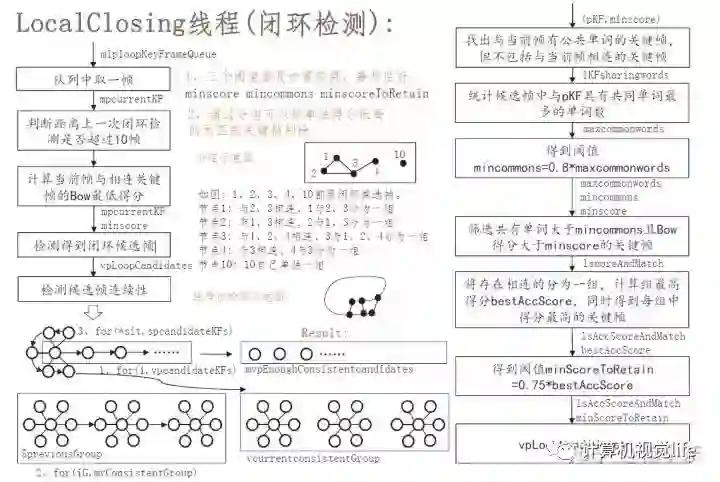 5. 至此可以得到若干的比较可靠的候选关键帧了:mvpEnoughConsistentCandidates。上面那么多的步骤,都是为了保证准确率。SLAM中要求闭环的准确率达到100%。