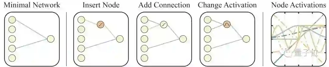用于搜索神经网络拓扑的操作受到神经进化算法(NEAT)的启发。在NEAT中,拓扑和权重值同时优化,研究人员忽略权重,只进行拓扑搜索操作。