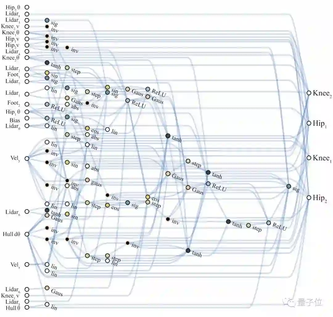 总结一下,在简单程度和模块化程度上,第二、三项任务都表现得优秀,两足控制器只用了25个可能输入中的17个,忽略了许多LIDAR传感器和膝关节的速度。