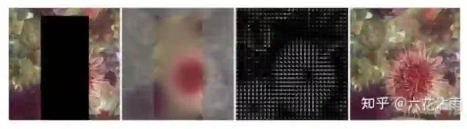 遮蔽左图,人类通常能猜出这个大概是什么,并绘制想象信息的轮廓,比如我们猜 masked input,大家大概能猜出来是一个狗