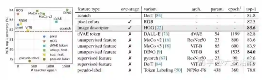然后重点来了:根据我们的研判,上述几种方法的效果,其实没有很本质的差别。这波工作只所以能够达到看似很高的性能,关键在于vision transformer的应用,以及它和masked image modeling任务的绝妙配合。当然,一组组优秀的参数也是功不可没的。