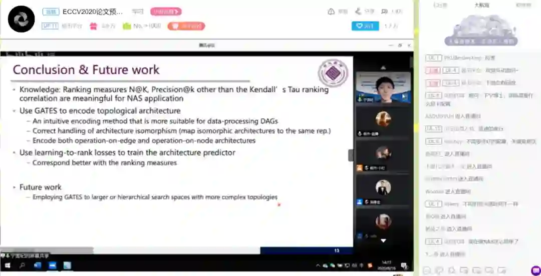 本次报告会包括神经网络结构搜索、对抗学习、图像语义分割、自监督与半监督学习四个专题,每个专题包含三到五篇ECCV2020接收的文章,每篇文章包含十二分钟的报告与三分钟的问答。