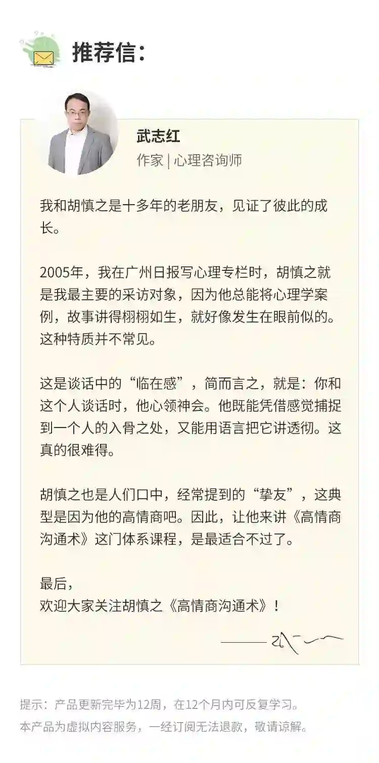 寻找贵人、与贵人互动都需要高超情商和沟通技巧。胡慎之老师开讲《高情商沟通术》,为你拆分最常见的24种人际关系,手把手教你成为沟通高手。
