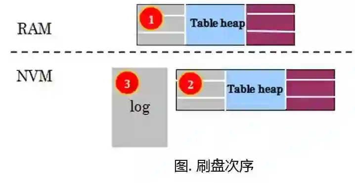 他们针对NVRAM提出一个新算法称之为write-behind Logging,就是事务提交的时候,直接把脏页写入NVRAM(因为NVRAM的随机IO也是相当快的)。脏页刷盘以后,再去写日志。