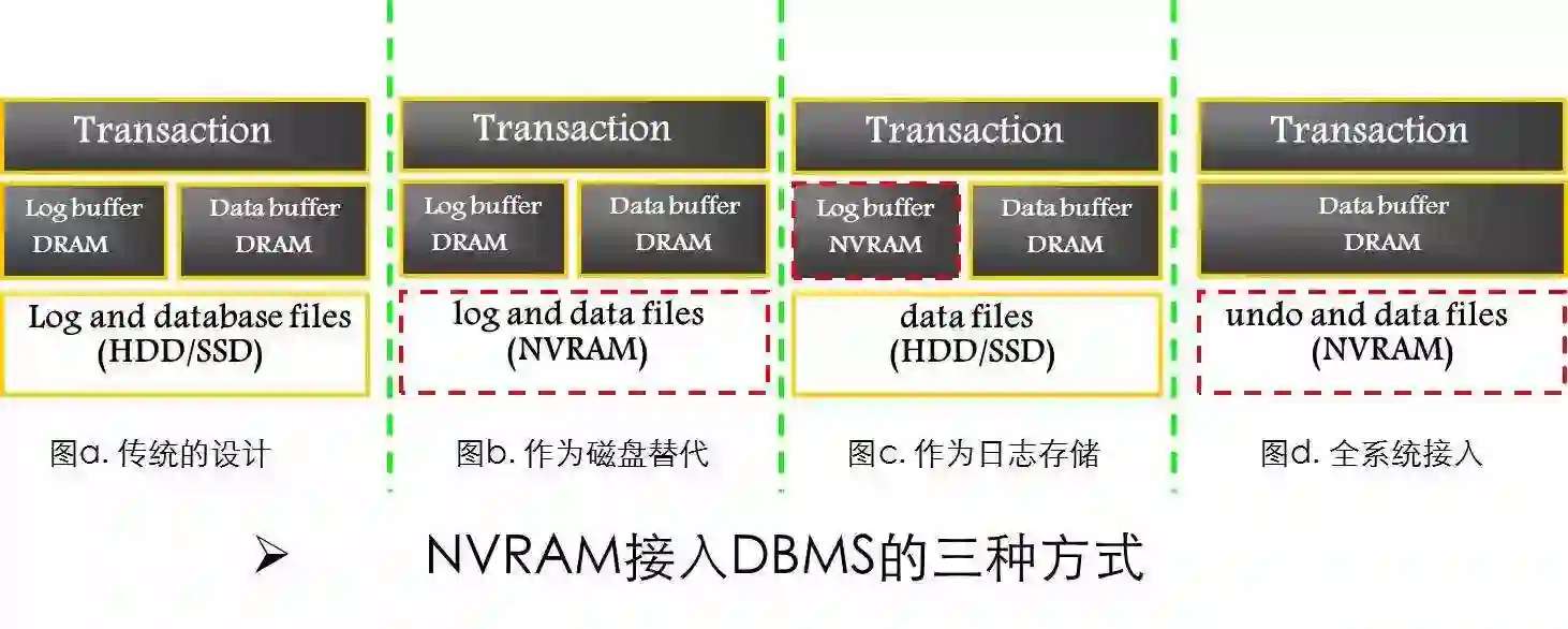 第三种方式,是全系统接入的,系统经过全面的改造,把数据放在NVRAM。这个可以跟第二种接入方式对比一下,系统不再维护Log Buffer这个数据结构,完全被废弃掉。