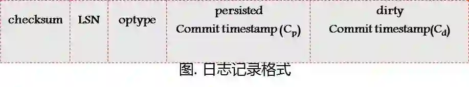 他们所设计的日志记录是这样子,不用再去构造什么After-image,直接就写上事务提交的时间区间(Cp,Cd)就行了。小于CP这个时间点的事务都已经提交了,而落在这个时间区间(Cp,Cd)里面的事务,就是还没有提交的。在事务恢复的时候,系统知道这个时间区间的事务没有提交,对其它事务不可见。系统没有必要去进行Redo操作了,因为数据都已经持久化。系统崩溃恢复时,需要一趟扫描日志,建立崩溃时候的时间区间(检点可以减少需要扫描的日志量)。建立这个时间窗口相当于undo操作。