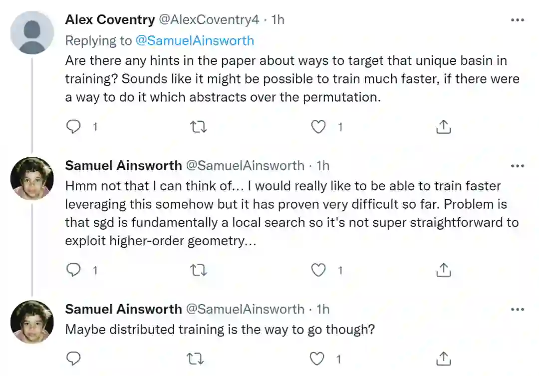 论文一作、华盛顿大学博士 Samuel Ainsworth 也解答了网友提出的一些问题。