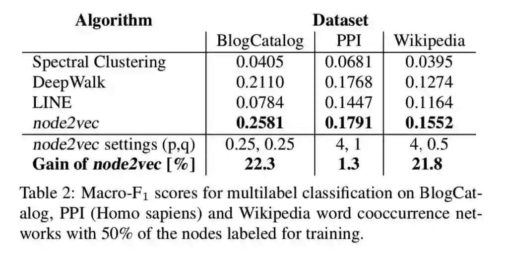 根据经验评估 node2vec 的多标签分类和对几个实际数据集的 link 预测。