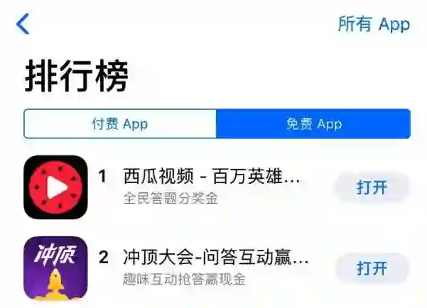 2018年1月份是答题类APP玩法最为巅峰的时刻,一度霸占了各大应用商店的前10名。最早一批推出直播答题的《冲顶大会》、《西瓜视频》等平台更是享受到了用户红利。