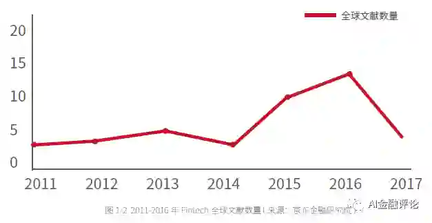 报告显示,全球对Fintech这一新兴概念的深入研究才刚开始,从2011 年至今,相关文献数量逐年增多。