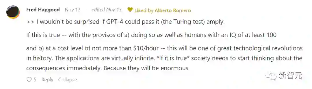 「如果GPT-4能充分通过图灵测试,我不会感到惊讶。」