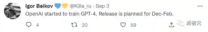 「OpenAI已经在训练GPT-4,并计划于12月-2月间发布。」