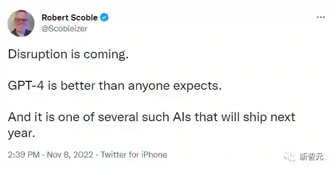 「颠覆即将来临。GPT-4比任何人的预期都要出类拔萃。它是将于明年推出的几大AI产品之一。」