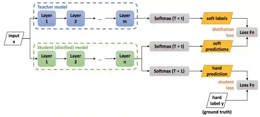 为了在标准硬件上运行这些模型,我们使用知识蒸馏,该过程,用较大的教师网络训练较小的学生网络,学生网络保证了大多数准确性,但使用的层数较少(通常较小),从而使其变得更小且更快。