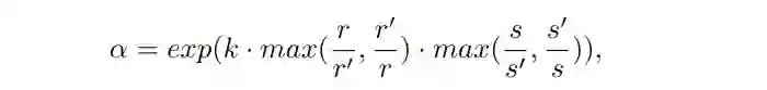 我们对尺度变化施加惩罚来抑制物体大小和高宽比的大变化,如下所示: