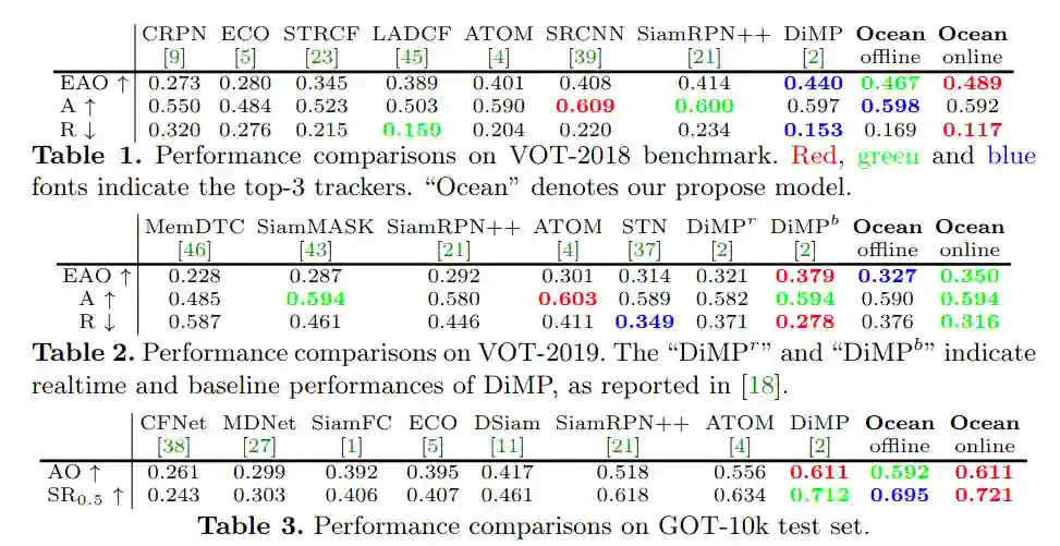 实验表明,我们的anchor-free跟踪器在五个基准上达到了最先进的性能,包括VOT-2018,VOT-2019,OTB-100,GOT-10k和LaSOT。