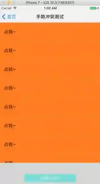 其他:经测试,若示例一中的手势识别器设置 cancelsTouchesInView 为NO,手势识别器和button都能响应事件。也就是说这种情况下,button不会阻止父视图中手势识别器的识别。