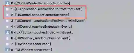 断点看一下点击cell后 hook_sendTouchesShouldBeginForDelayedTouches: 调用时的信息: