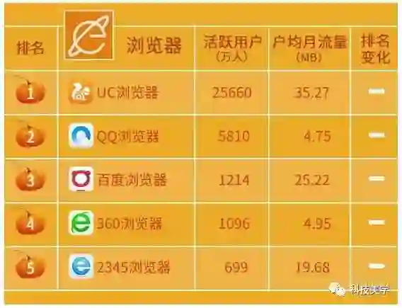 反差更大的是,UC浏览器的户均月流量是35.27(MB) ,而QQ浏览器只有4.75(MB), 在排行榜前五名中垫底。