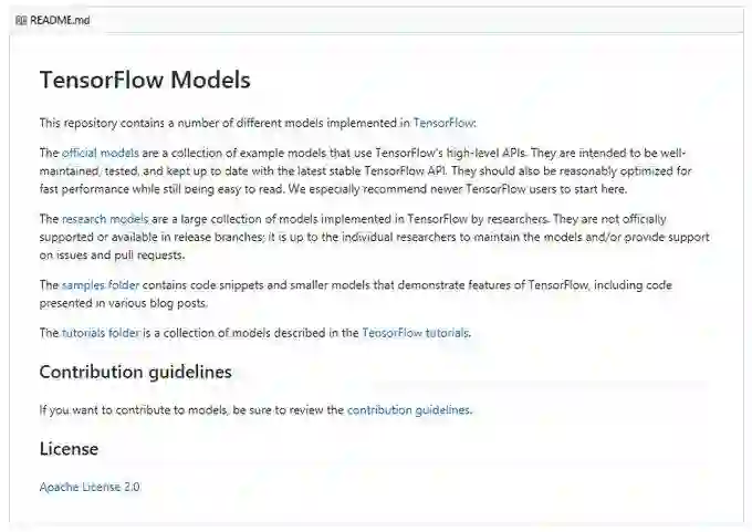 网址是:https://github.com/tensorflow/models