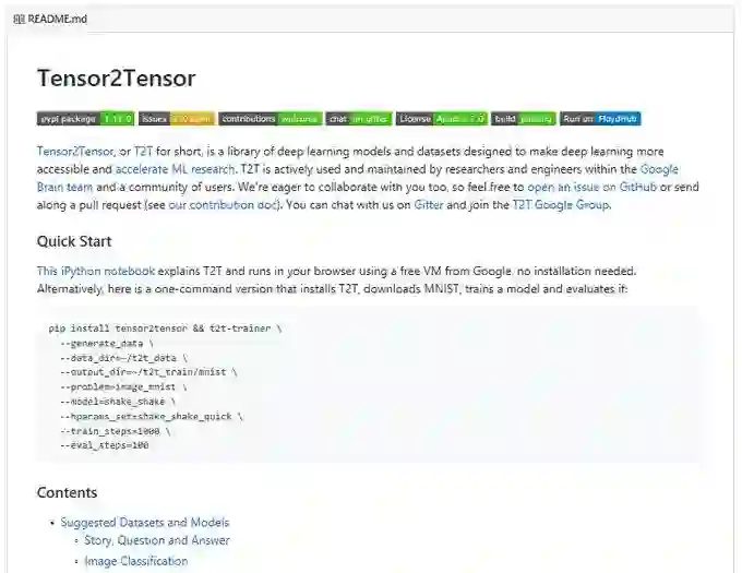 网址:https://github.com/tensorflow/tensor2tensor