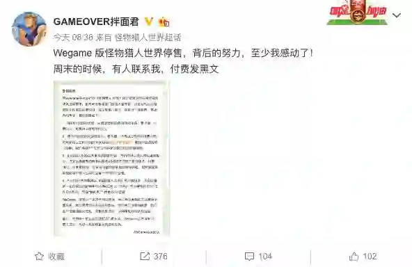 腾讯此次在《怪物猎人世界》上投入了非常多的资源,如果可以让成果付诸东流,那么对于wegame的打击将会是巨大的。