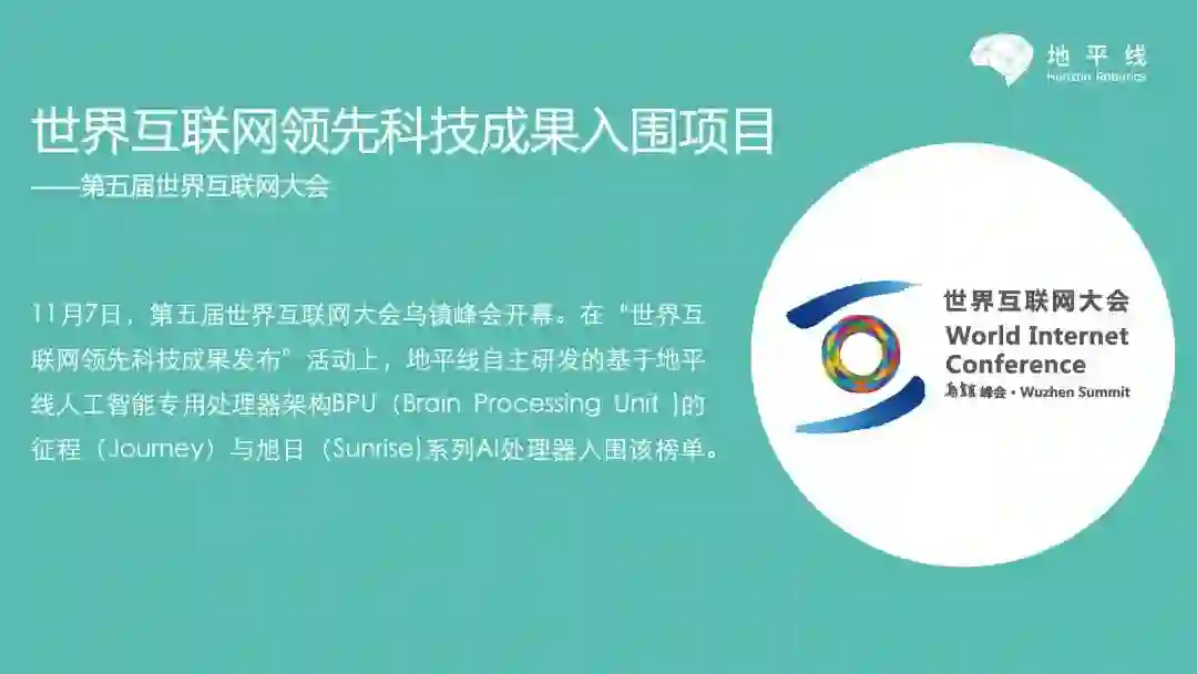 昨天,大会主办方发布了“世界互联网领先科技成果”榜单。基于地平线人工智能专用处理器架构BPU(Brain Processing Unit )的征程与旭日系列处理器成功入围。