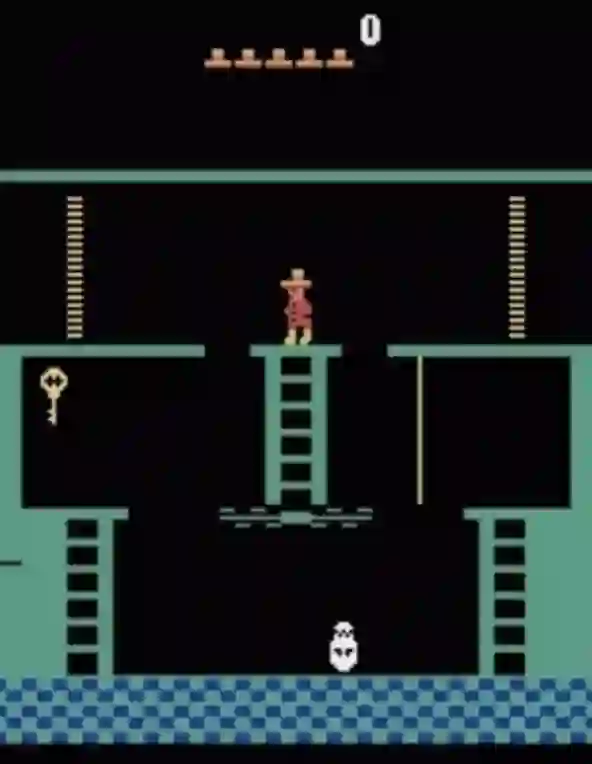 其中一个典型的工作是一篇MIT[3]的论文。当年DeepMind介绍QLearning玩Atari游戏的时候,着重介绍表现超过人类的打砖块等游戏,而在这个表的最底部,是一个Q-Learning得分为0的游戏,叫做Montezuma's Revenge。这个游戏的核心玩法在于,需要玩家先找到钥匙再开门,先找宝剑再打怪。为什么这个游戏对于Q-Learning非常困难呢?因为这个游戏的反馈(Reward)非常稀疏,只有在开门或者打怪成功之后才会得到奖励,这对于一个采取随机探索策略的模型来说,获得一次正反馈就如同大海捞针。
