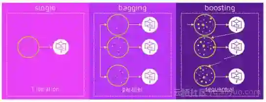 图2. Bagging (独立模式) 和 Boosting (顺序模式).