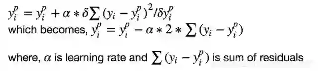 所以,我们基本上是更新预测,使我们的残差总和接近0(或最小),预测值足够接近实际值。