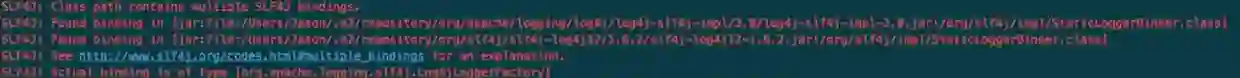 使用slf4j进行log的定义,注意需要保证项目中不再依赖于slf4j1。如果启动时有如下提示,说明依然依赖了多个slf4j