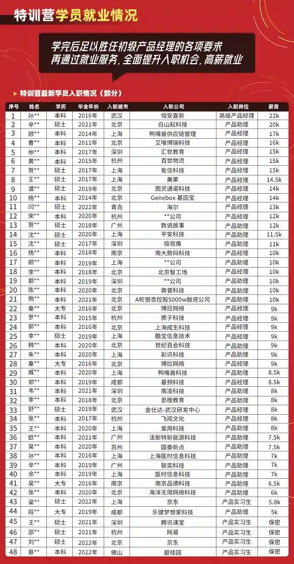 看到这,如果你确定要转行产品,也愿意投入时间和精力,推荐你一门为你量身定制的课程——《产品经理就业特训营》。目前,它已经帮助2000+位0经验的应届生或职场新人拿到offer。究其原因,在于以下几点: