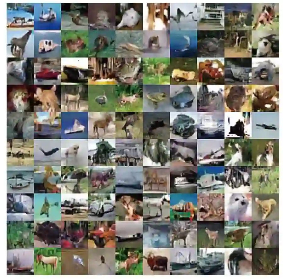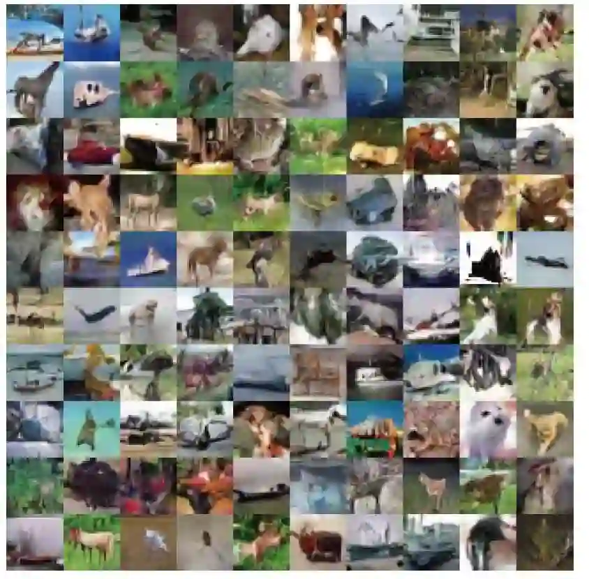 图4 生成式对抗网络的超分辨在Cifar-10上的重建结果