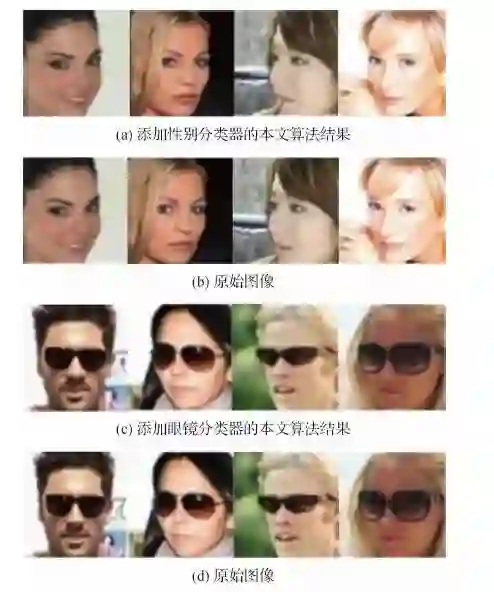 经CelebA数据集测试表明:添加性别分类器的Class-info SRGAN的生成图像性别特征识别率整体偏高(58%~97%); 添加眼镜分类器的class-info SRGAN的生成图像眼镜框架更加清晰。此外, 模型在Fashion-mnist与Cifar-10数据集上的结果同样表明其相较于SRGAN的重建质量更佳。