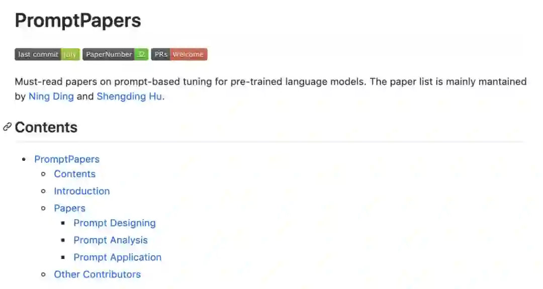 近段时间以来,我们可以看到大量有关 prompting 的论文出现。从清华大学开源的论文列表 thunlp / PromptPapers 中,我们可以看到大量的相关研究。