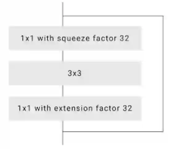 为进一步提高速度,谷歌研究人员优化了默认 ResNet 瓶颈。在 ResNet 论文《Deep Residual Learning for Image Recognition》中,作者将网络中间信道压缩四倍(即将 256 信道通过 64 个不同的卷积核压缩为 64 个)。然而,研究人员注意到在更为激进地压缩至 16 或 32 个信道后,质量并没有显著下降。