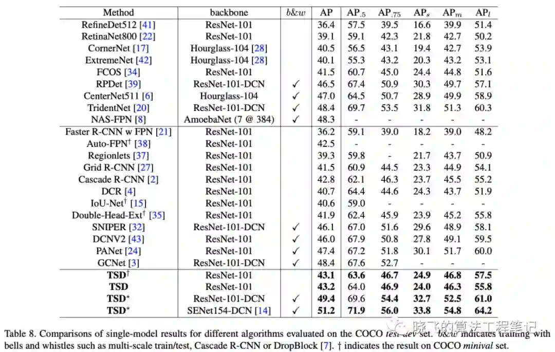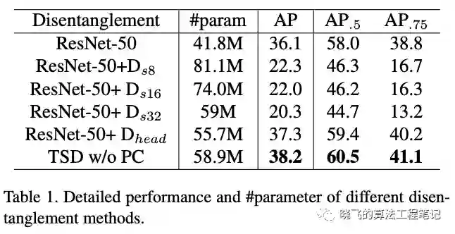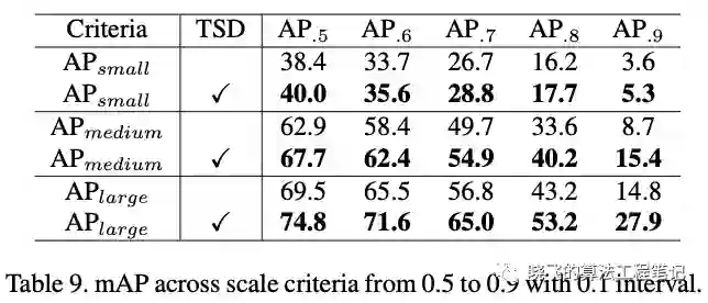 这里对比了TSD与不同的分解策略,比如 即从stride为8的特征图开始分解。