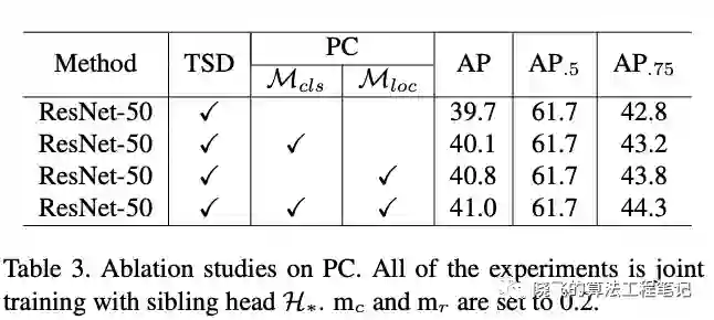 对于定位分支,PC如公式8, 为原方式的最终预测结果, 为TSD转换后的最终预测结果,仅对正样本进行计算,即约束TSD的预测结果的IoU需要比sibling head至少高