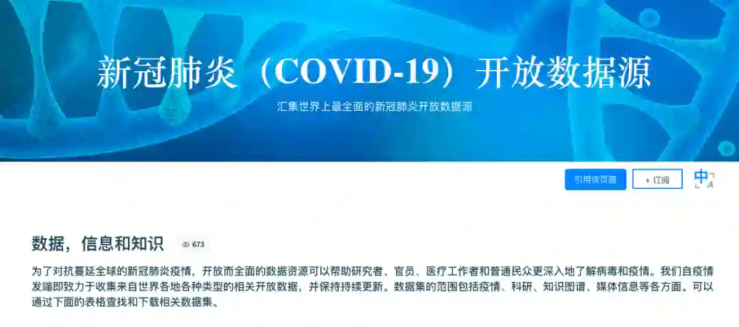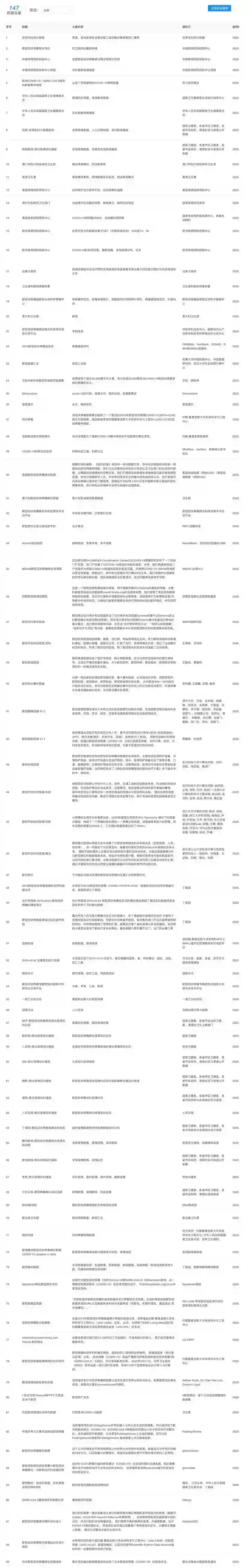 为了对抗蔓延全球的新冠肺炎疫情,开放而全面的数据资源可以帮助研究者、政策制定者、医疗工作者和普通民众更深入地了解病毒和疫情。