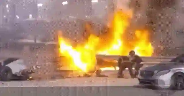 2020年F1巴林大奖赛上,车手格罗斯让驾驶的赛车撞进钢护栏,之后车身燃起熊熊大火。