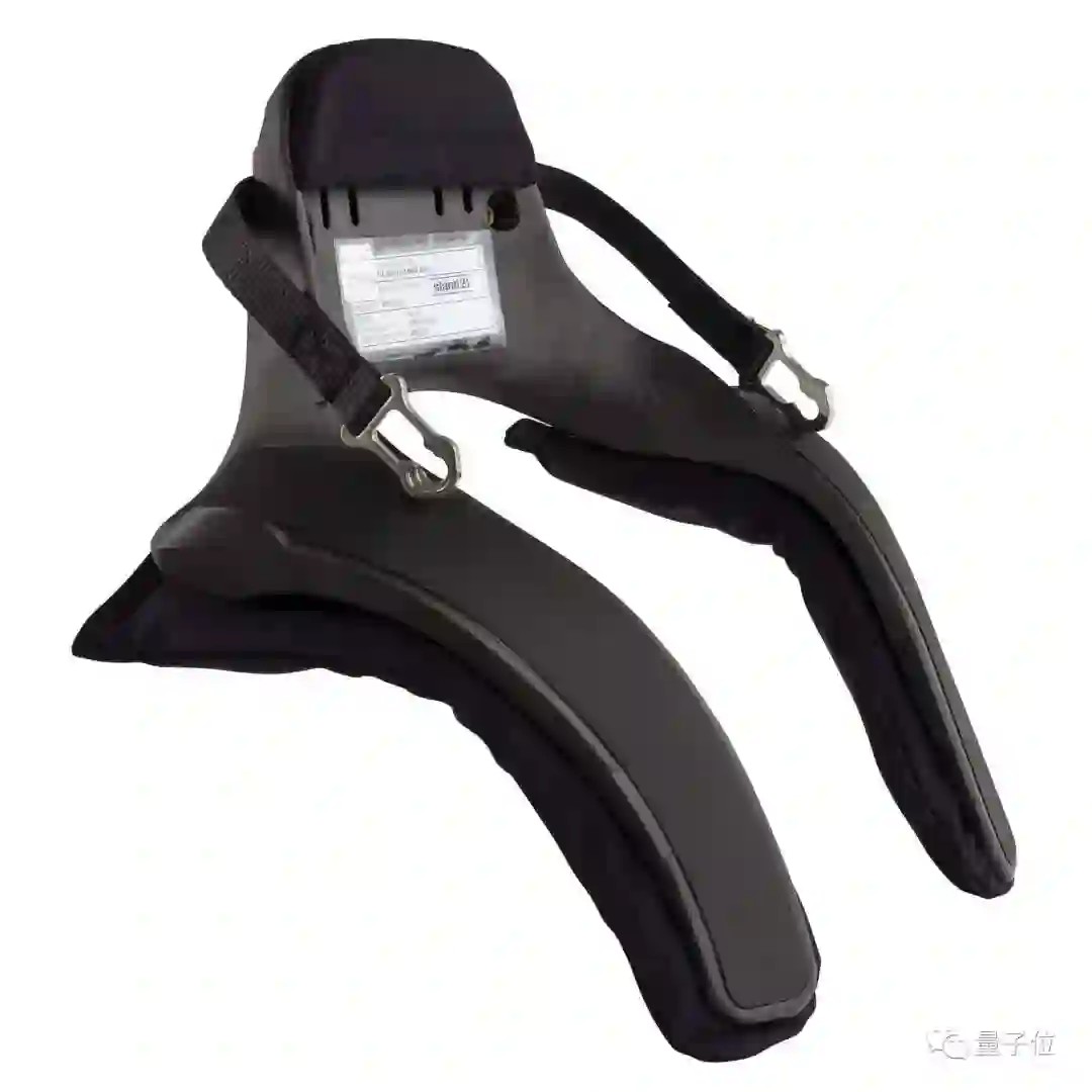 简单来看,它是一个可以卡在车手脖子上的U型装置,挂带能与车手的头盔连接。